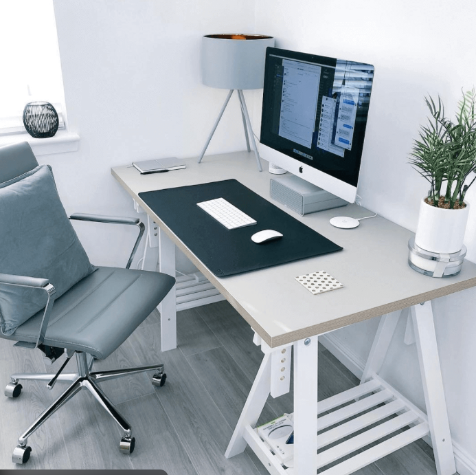 데스크 매트 하나만 깔아줘도 정리된 느낌을 줄 수 있어요.